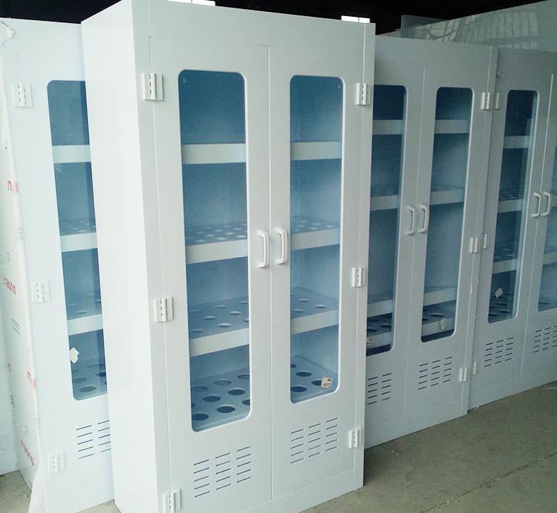 具有耐強酸、強堿與抗腐蝕的特性。 雙開門(內置四塊層板,板面開孔Φ20、Φ30、Φ40、Φ50)無結構固定板,含5mm鋼化玻