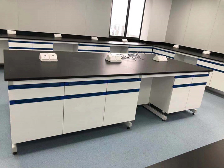 主要是鋼木實驗臺家具,鋼木材質臺面為12.7mm厚黑色優質實芯理化板。寶藍色厚抽屜及門板。