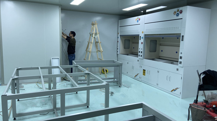 這邊是另外一個房間的通風柜和鋼木實驗臺再安裝,由于現場安裝圖片很多,只能發部分給客戶參考